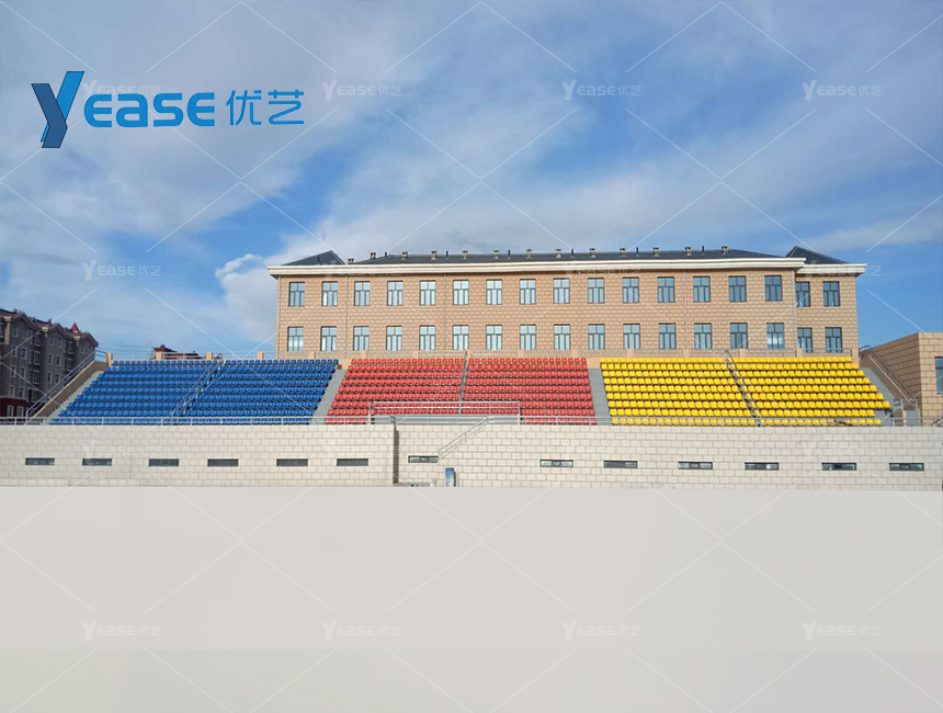 坚固耐用的钢结构看台系统,满足户外场馆长期使用与高承载要求。