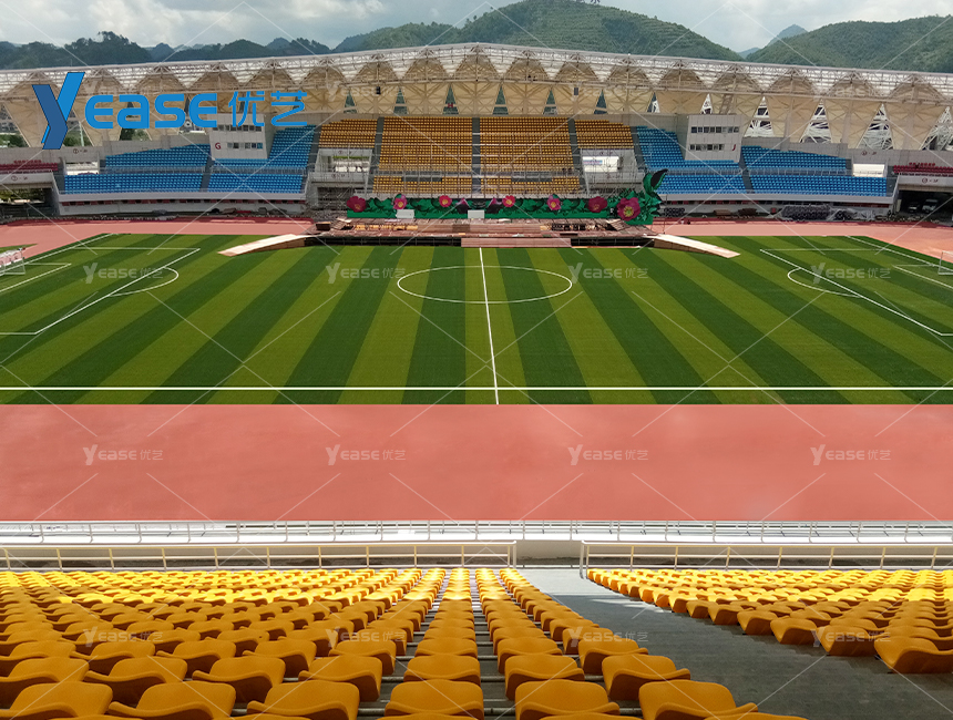坚固耐用的钢结构看台系统,满足户外场馆长期使用与高承载要求。
