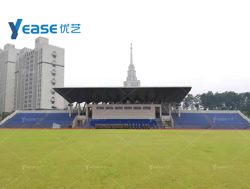 坚固耐用的钢结构看台系统,满足户外场馆长期使用与高承载要求。