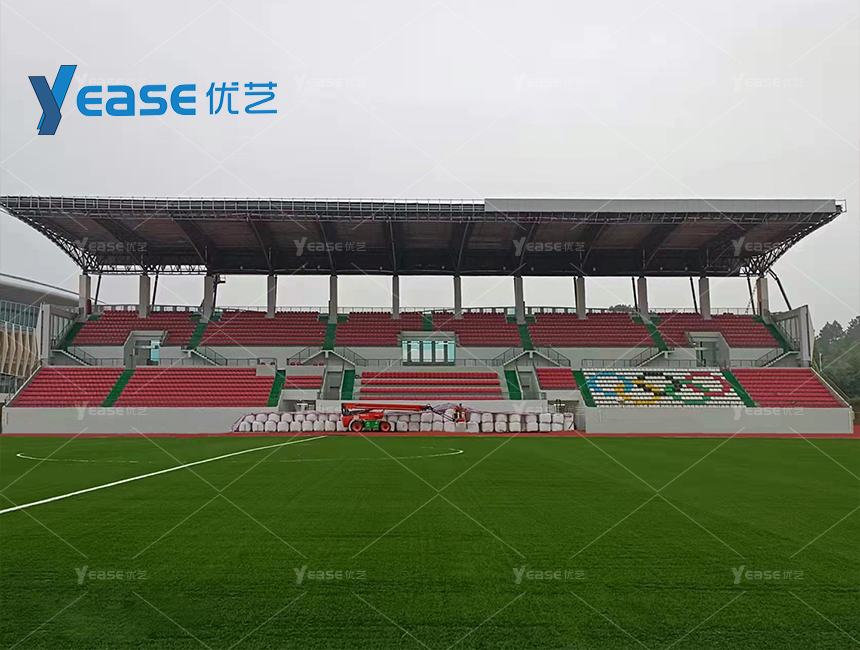 坚固耐用的钢结构看台系统,满足户外场馆长期使用与高承载要求。