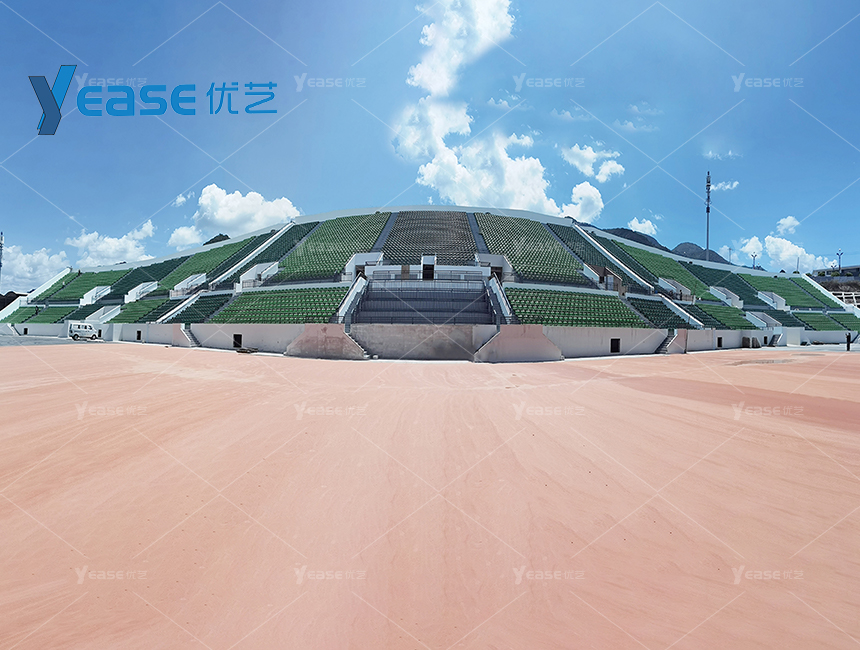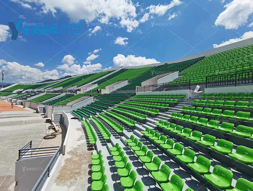 坚固耐用的钢结构看台系统,满足户外场馆长期使用与高承载要求。