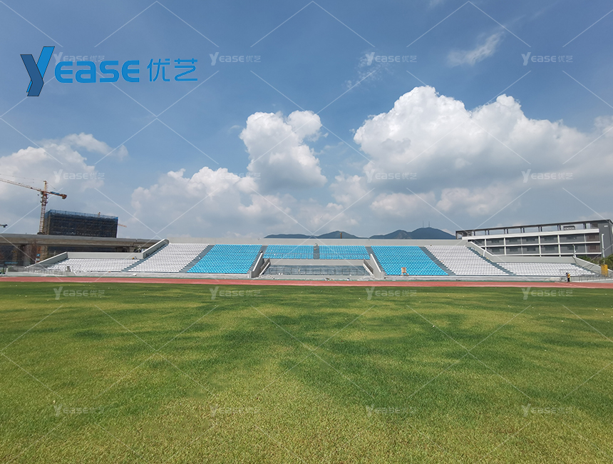 坚固耐用的钢结构看台系统,满足户外场馆长期使用与高承载要求。