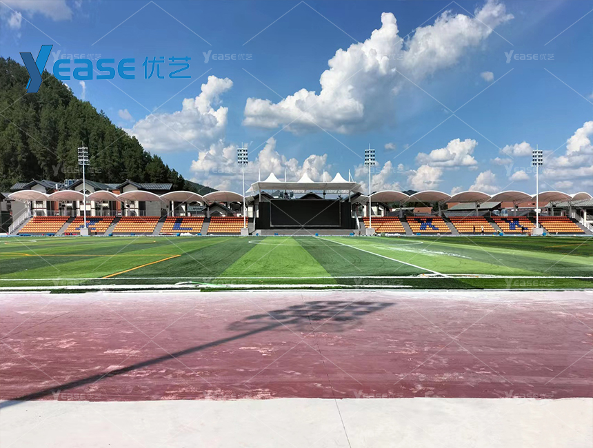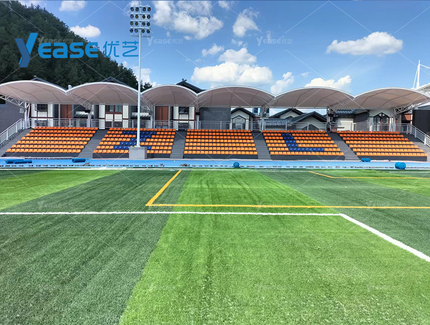 坚固耐用的钢结构看台系统,满足户外场馆长期使用与高承载要求。
