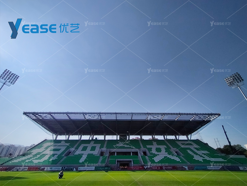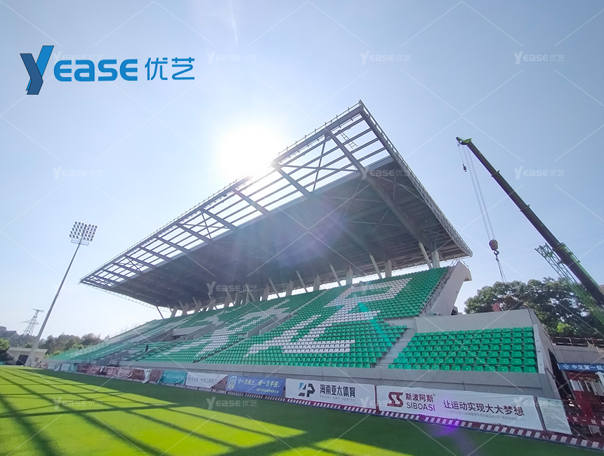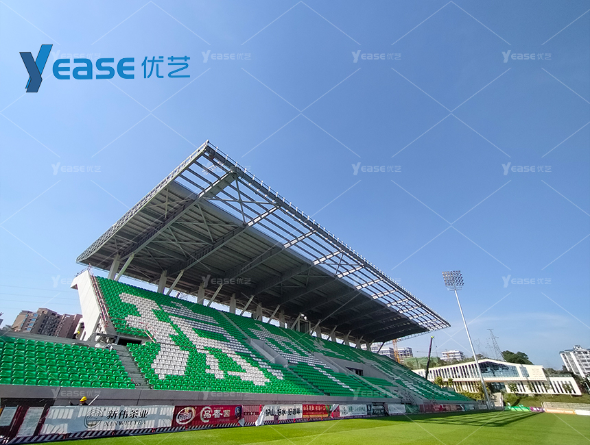 坚固耐用的钢结构看台系统,满足户外场馆长期使用与高承载要求。