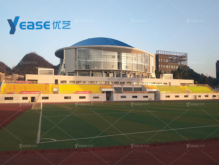 坚固耐用的钢结构看台系统,满足户外场馆长期使用与高承载要求。