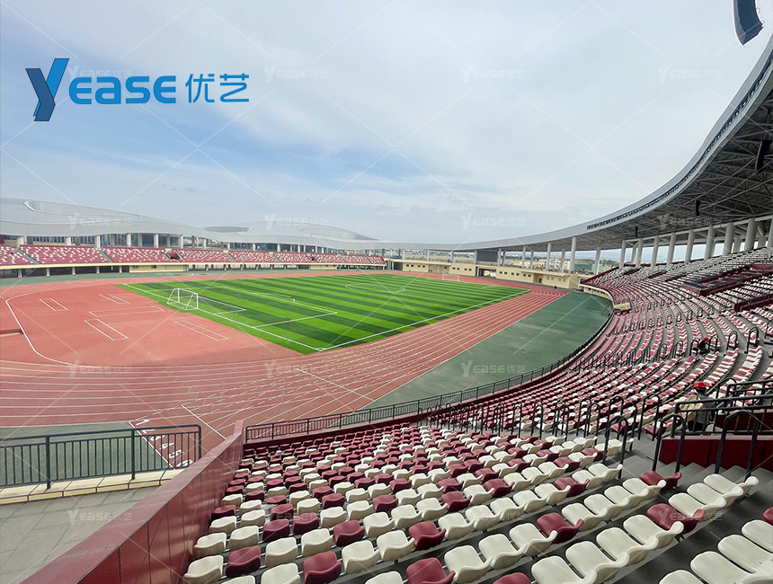 坚固耐用的钢结构看台系统,满足户外场馆长期使用与高承载要求。