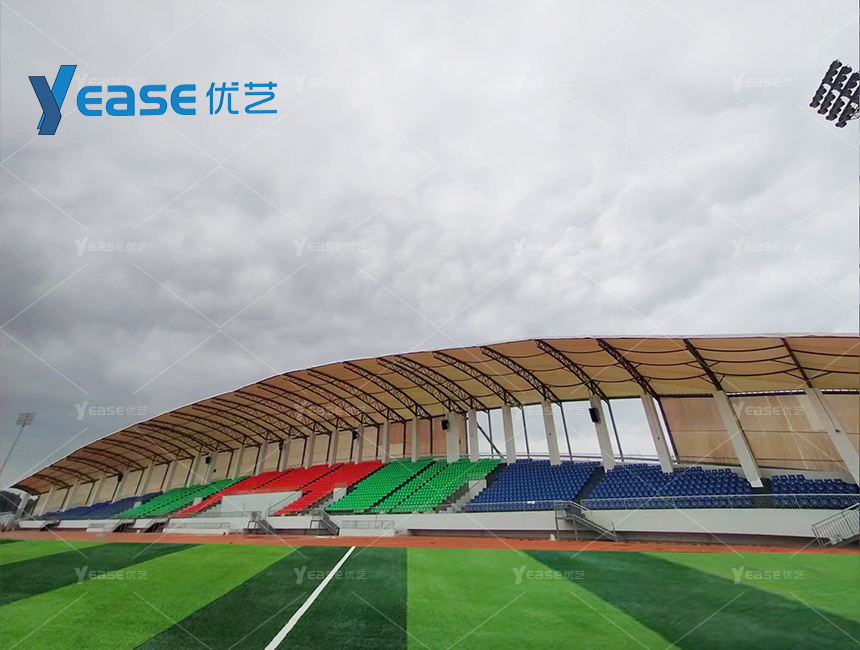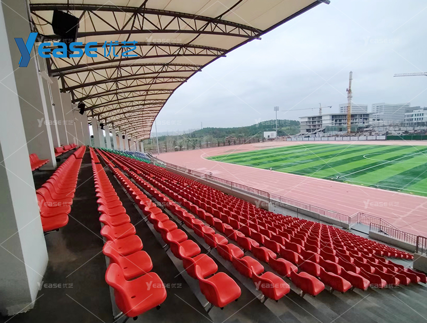 坚固耐用的钢结构看台系统,满足户外场馆长期使用与高承载要求。