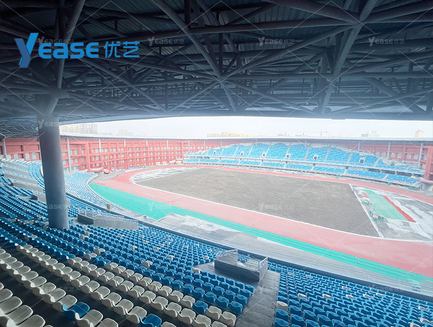 坚固耐用的钢结构看台系统,满足户外场馆长期使用与高承载要求。