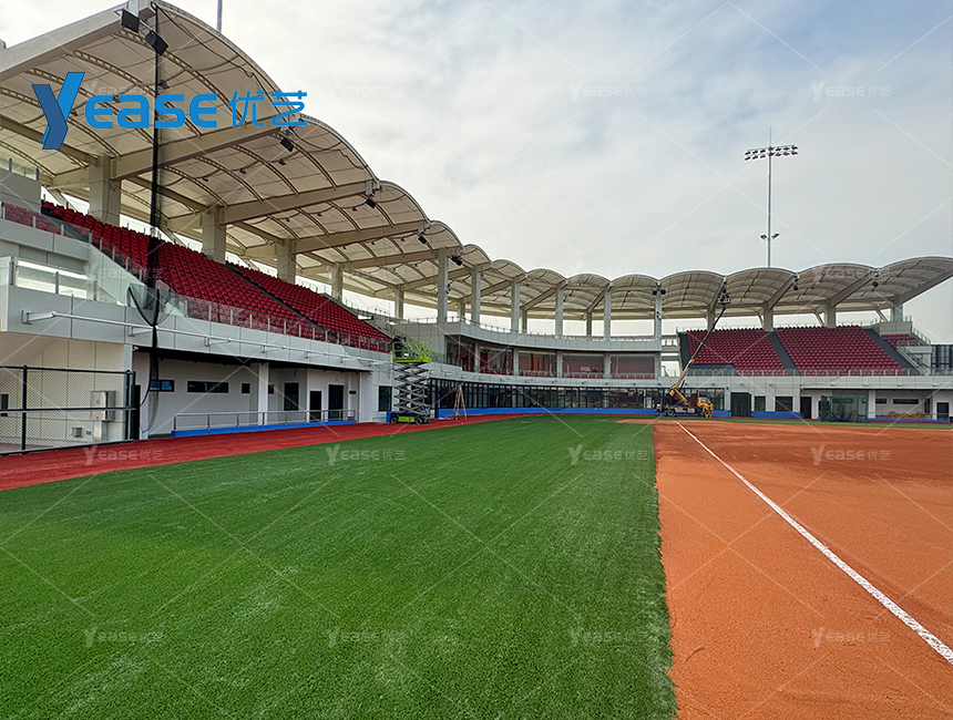 坚固耐用的钢结构看台系统,满足户外场馆长期使用与高承载要求。
