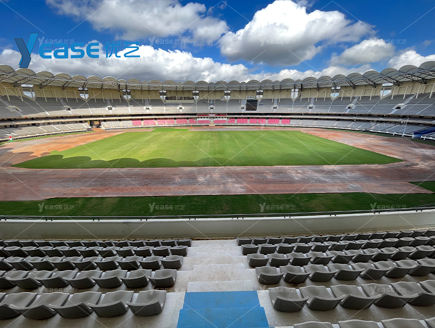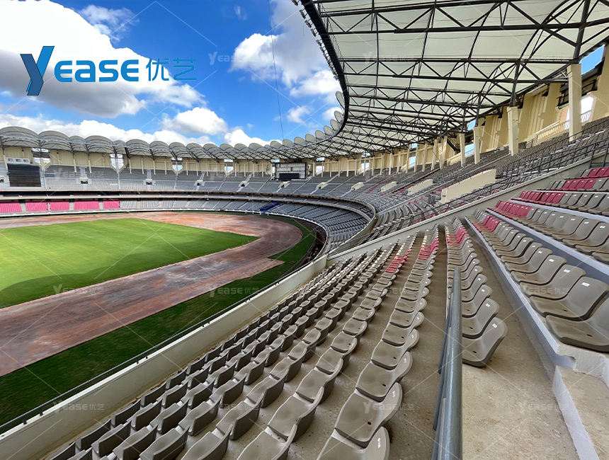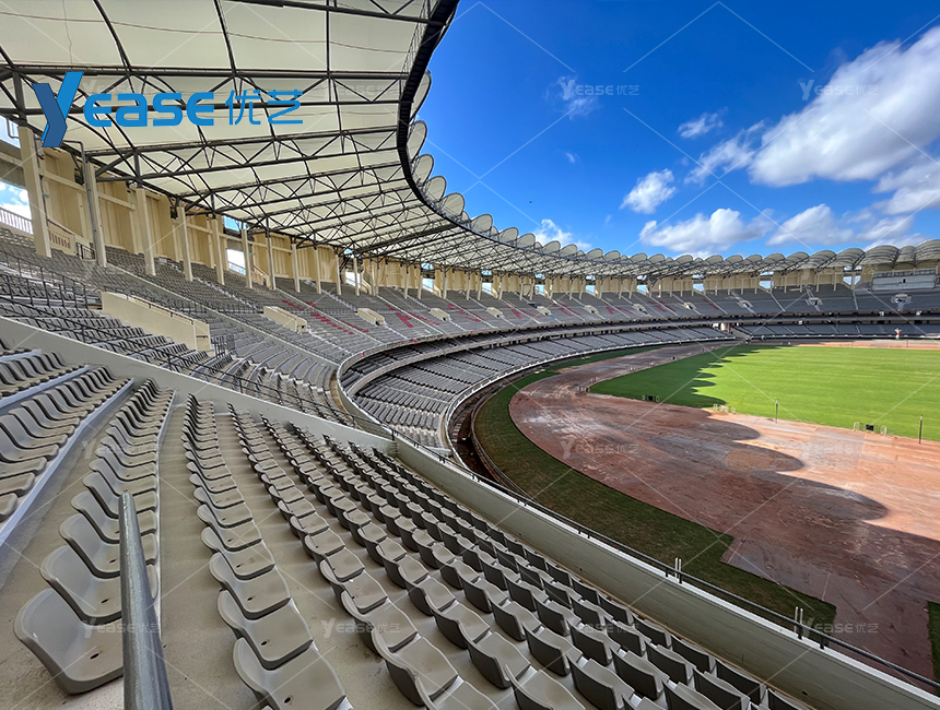 坚固耐用的钢结构看台系统,满足户外场馆长期使用与高承载要求。